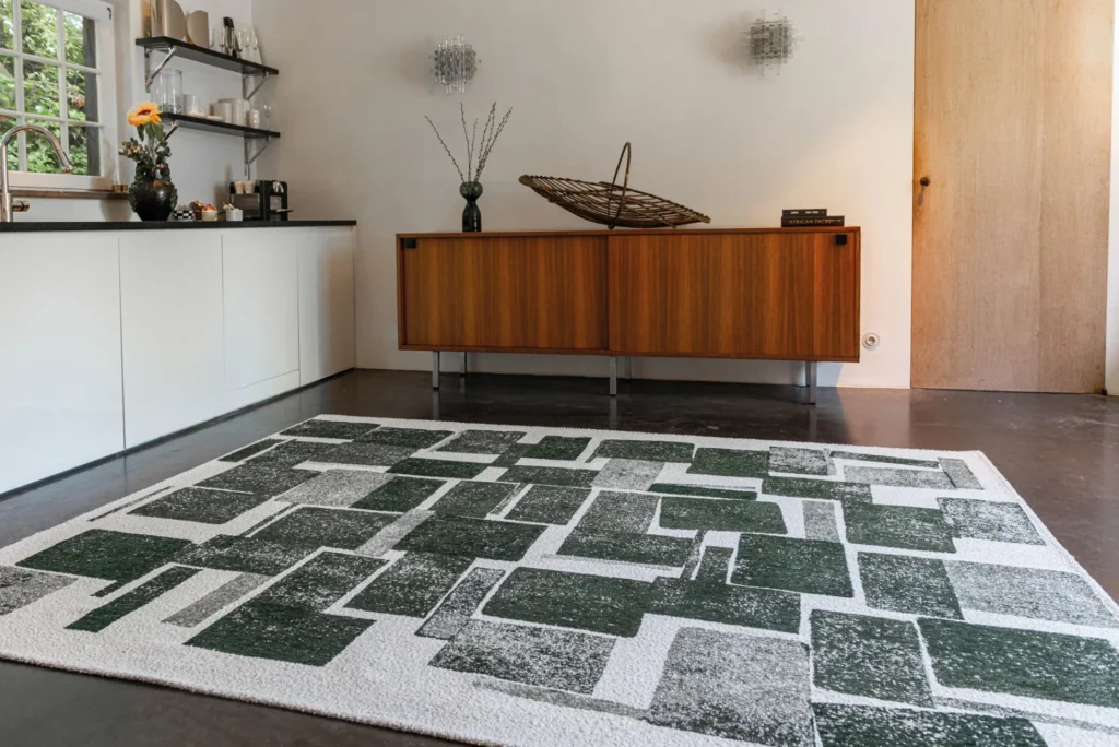 Сучасний килим має простий дизайн і нейтральні кольори. Крім того, він добре поєднується з мінімалістичним інтер’єром.